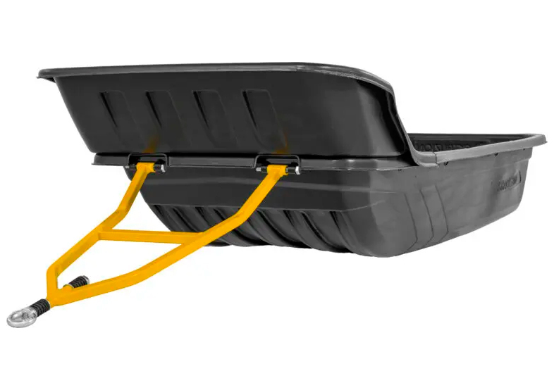 - Полная комплектация: Сани уже укомплектованы универсальным сцепным устройством для быстрого подключения и усилены отбойником для защиты от снега и грязи.