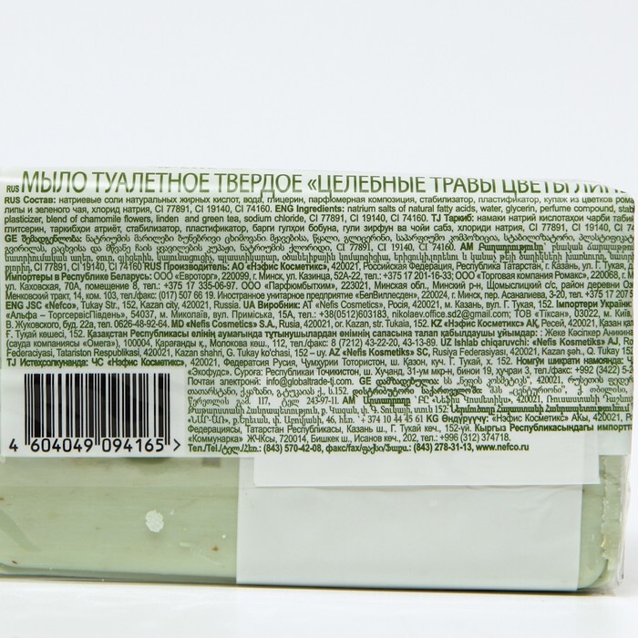 Состав: натриевые соли натуральных жирных кислот, вода, парфюмерная композиция, стабилизатор, пластификатор, вещества отбеливающие.